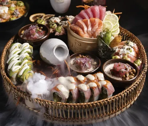 Un rollo sin arroz envuelto en láminas de pepino, relleno de salmón, atún, palta. Reposando sobre una seductora salsa Shiromi y coronado con un cremoso de palta. Una combinación de ingredientes frescos y técnicas innovadoras que deleitarán los sentidos, en una experiencia gourmet llena de sofisticación y sabor.